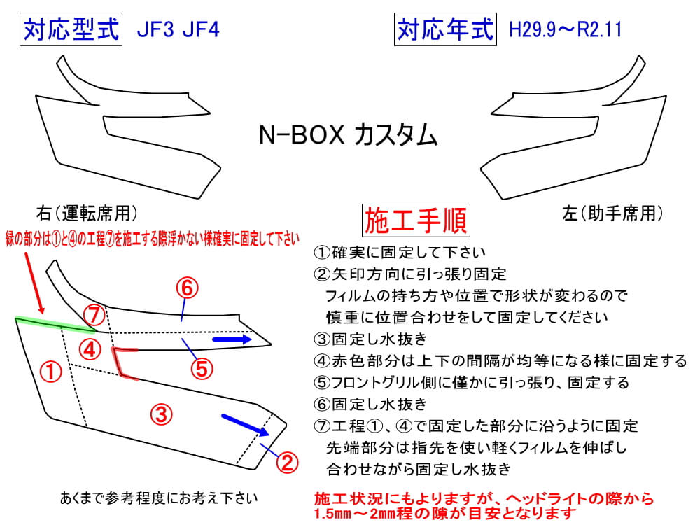 型が合わない、のではなくヘッドライトの湾曲に合わせ伸ばしながら貼る商品です。