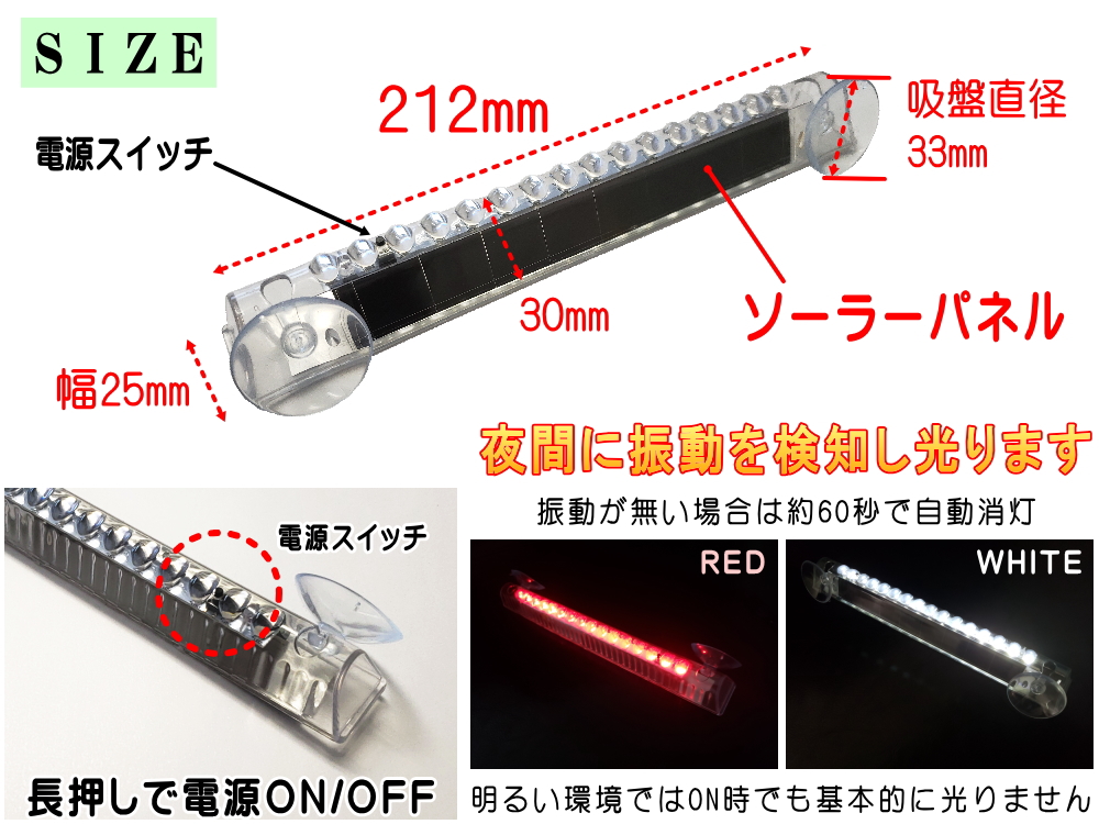 センサー部(パネル部)が暗くなると自動で点滅が始まります。