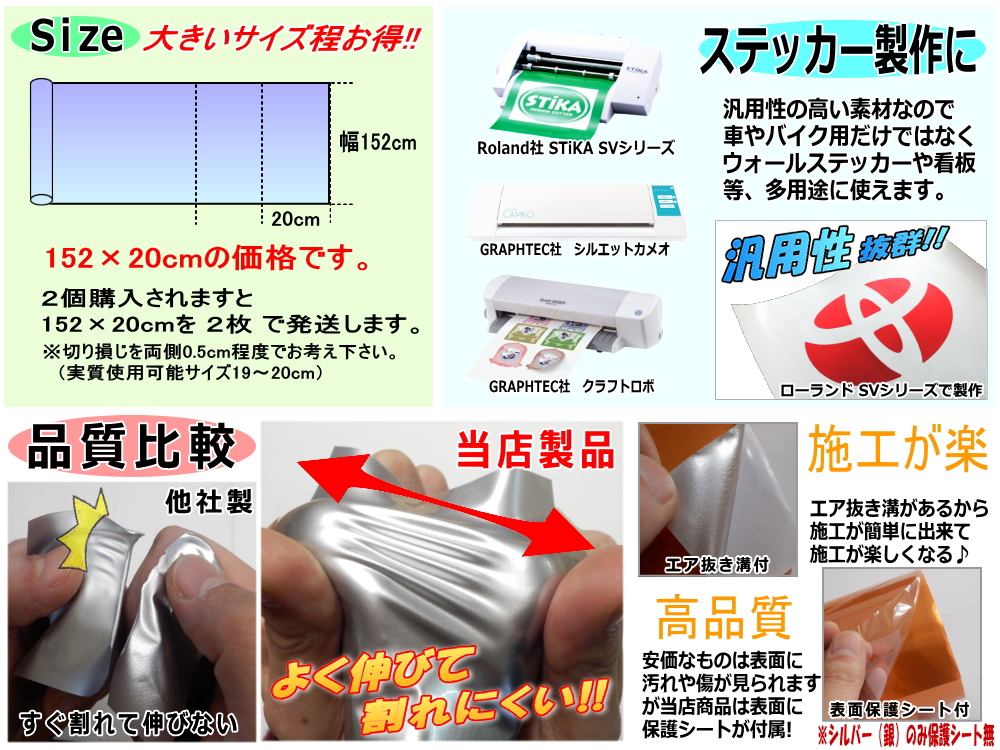 【サイズに関しての注意事項】 複数個購入された場合は、購入個数分カットします。 例…2個購入→152×20cmを2枚
