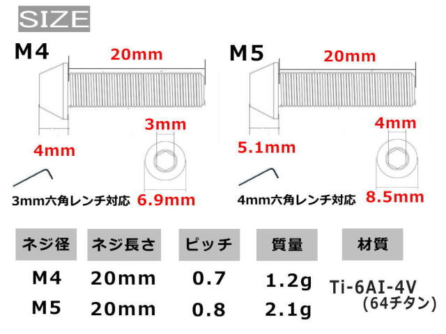 「サイズ」 M4 20mm P0.7 M5 20mm P0.8