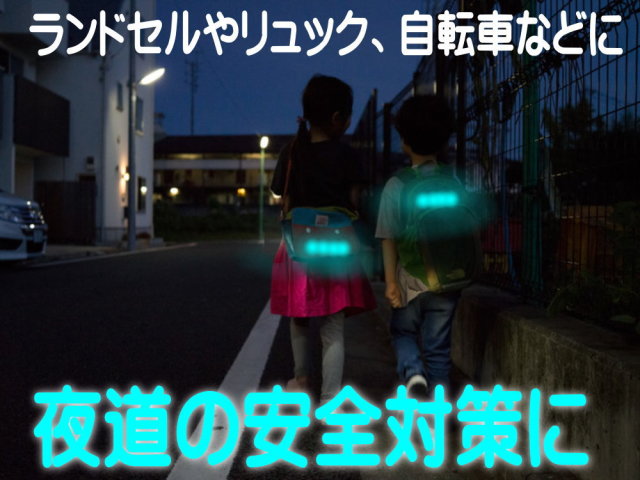 他には、子供のランドセルやリュックに貼れば、暗い道を歩くときの車にアピール出来