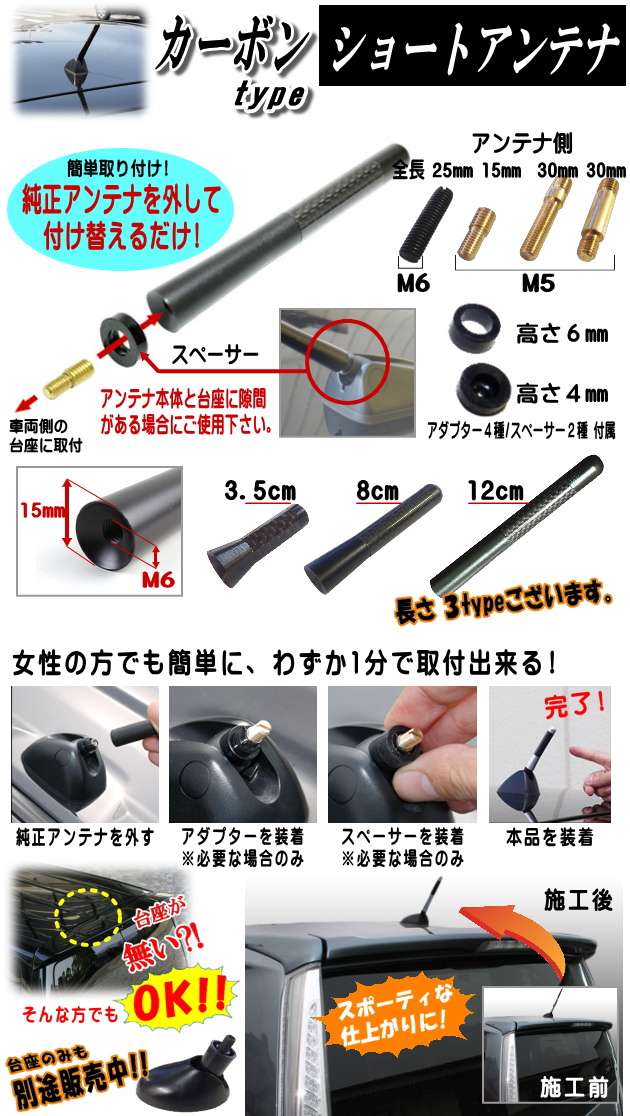 • カーボンアンテナ 汎用シームレス ショートアンテナ 黒 ブラック 銀 シルバー 35mm 80mm 120mm車載用 ユーロタイプ アンテナ ネジ径M5 M6対応 純正 交換用ルーフトップ アルミ製ウェットカーボン調 ヨーロッパ車ロッド欧州FM AM