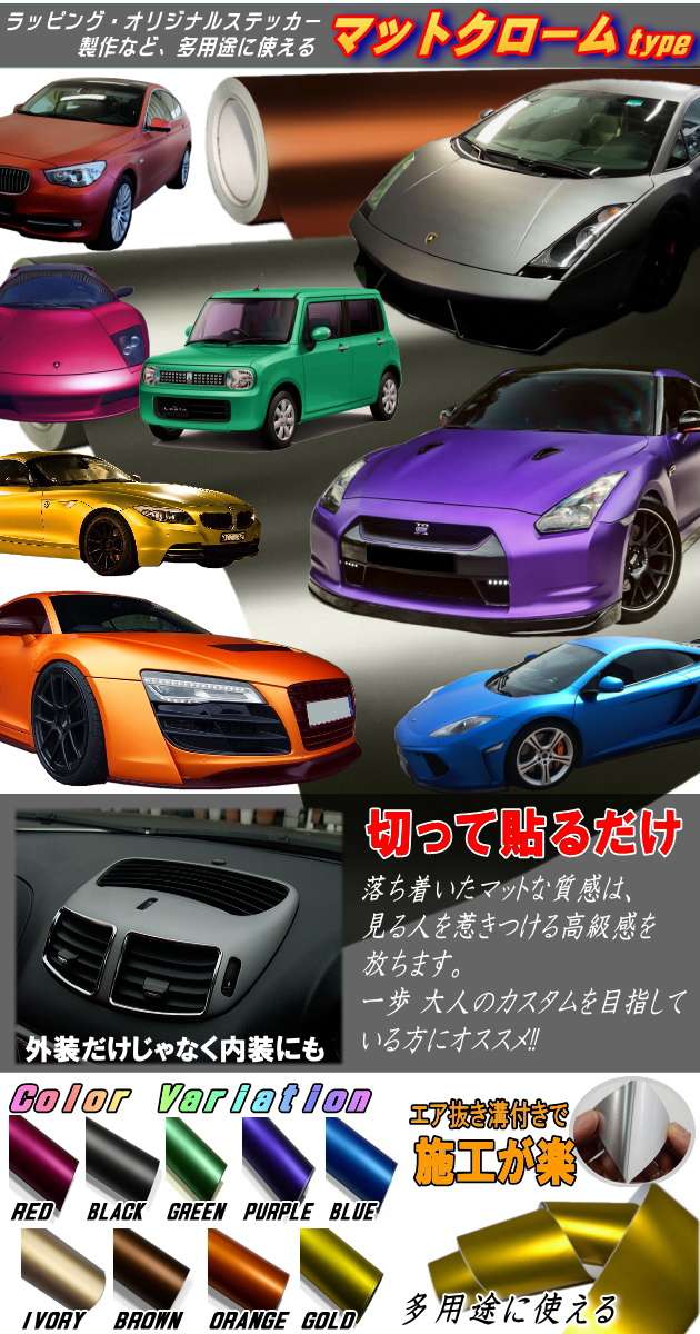 • マットクローム(大) 152cm×100cm~ ツヤ消し 艶消しメッキ調ラッピングフィルム 曲面OK アルマイト調アイスカラー カッティング シート ステッカー デカール ボンネット 製作 屋外 内装 外装